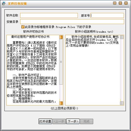压缩加密安装宝2012较为实用的功能是,它可以对一批文件进行打包,解包,以及自解包功能,较为主要的功能,它还可以为你制作的软件进行打包安装,而且打包安装过的文件还具有自我免疫功能,防止一般的病毒入侵和人为破坏,出现这种情况,只要重新安装,即可解决感染问题!