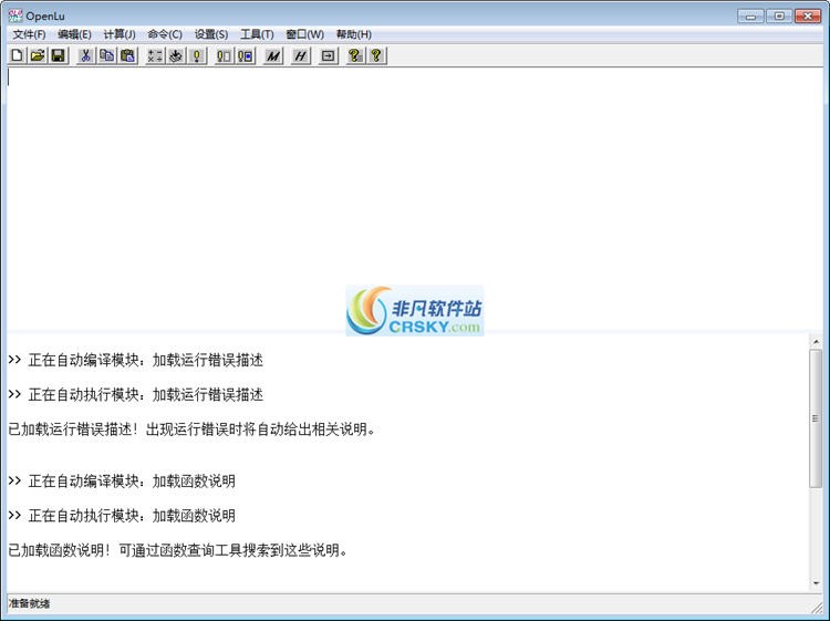 工程计算助手(OpenLu)工作模式有三种,其即时编译计算模式特别适合于常用计算:在代码窗口写代码时,即时给出代码中的错误,若没有错误,将进行计算给出结果。